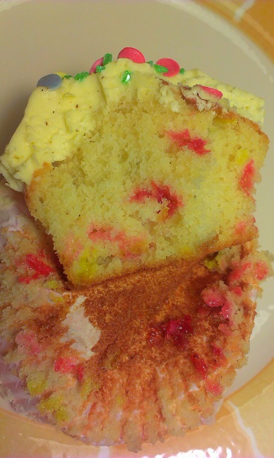 Hacía mucho tiempo que quería hacer unos cupcakes con confetti, con confetti por dentro y por fuera y es que me parecen tan alegres y tan divertidos :)